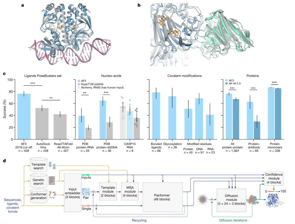 AlphaFold3準(zhǔn)確預(yù)測生物分子復(fù)合物的結(jié)構(gòu)