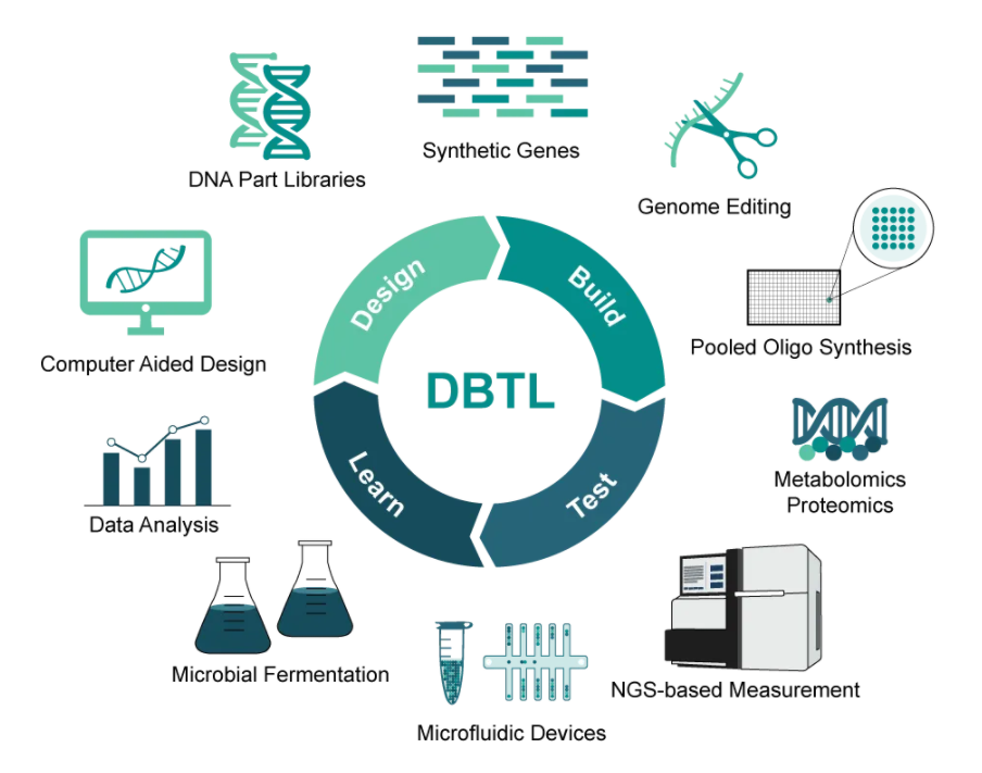 3. 代謝途徑重建:通過設(shè)計、構(gòu)建、驗證策略來設(shè)計代謝途徑。新興基因編輯、合成工具加速生產(chǎn)宿主中代謝途徑的構(gòu)建。