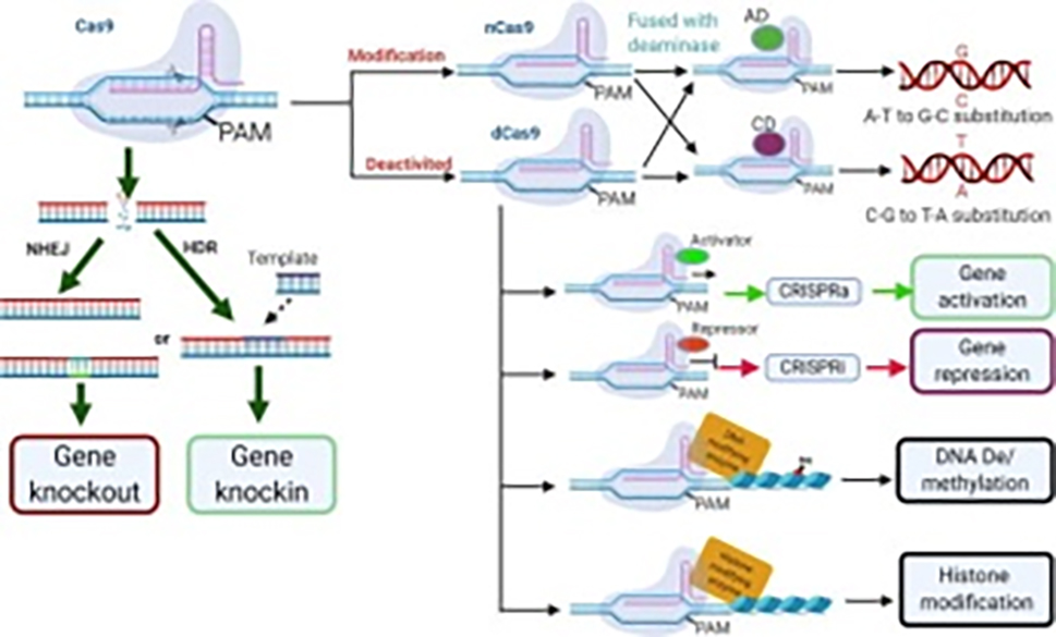 CRISPR/Cas基因編輯具有許多潛在的應(yīng)用,如基因敲除、敲入、基因突變、堿基編輯以及CRISPR/Cas介導(dǎo)的基因調(diào)控和表觀基因組編輯。