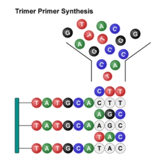 Trimer組合突變文庫以氨基酸作為一個單元進行突變,以擴大突變范圍。通過針對序列進行設(shè)計,可以靈活指定氨基酸的種類和比例,避免不必要的同義密碼子和氨基酸,解決了密碼子偏移、移碼突變和控制終止密碼子摻入等問題,同時顯著提高了文庫的均一性、覆蓋性和多樣性。